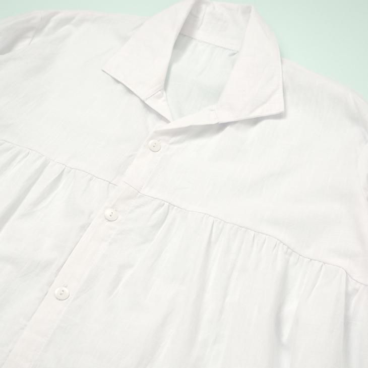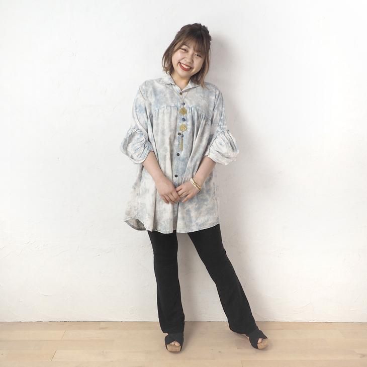 織りのコットン素材にムラ染めが魅力のベビードールシャツ。