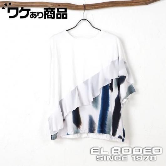 【ワケあり商品】VITA LITA(ヴィータリータ)フリルななめ切り替えトップス(ホワイト)