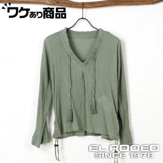 【ワケあり商品】クレープコットンVネックトップス(グリーン)