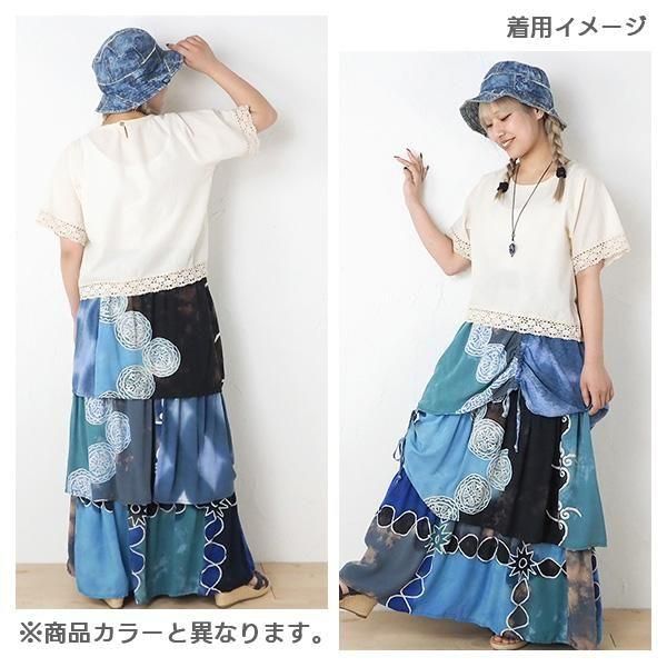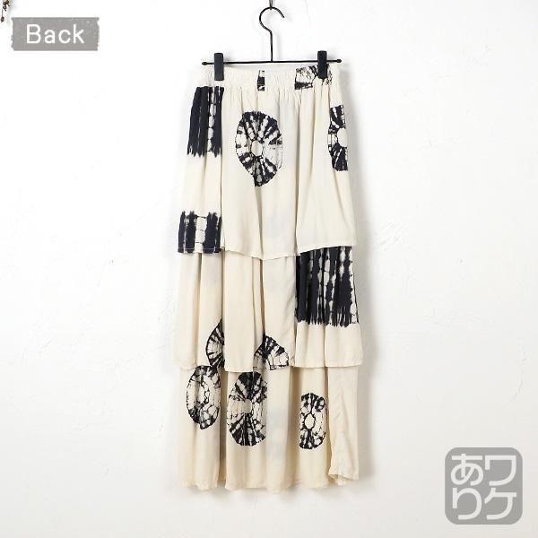 【ワケあり商品】レーヨン染め段々ロングスカート(ナチュラル)