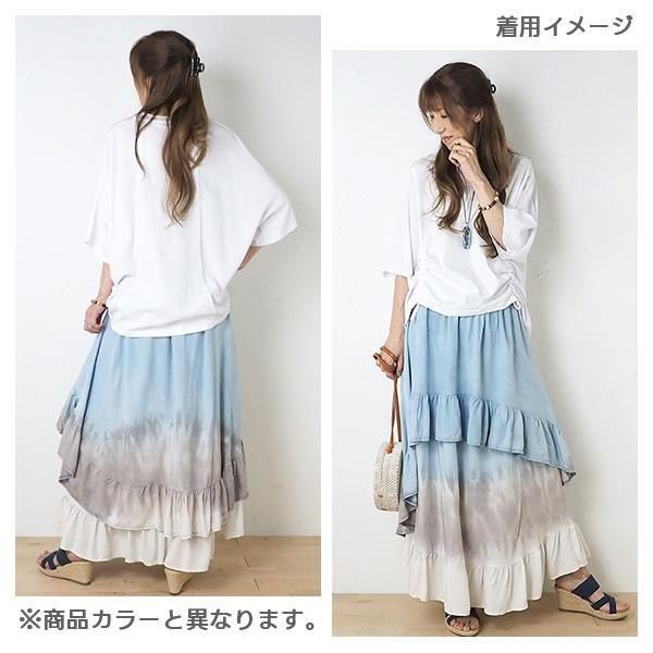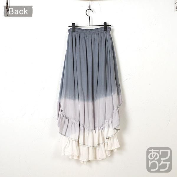 【ワケあり商品】レーヨンフリル重ねロングスカート(グレー)