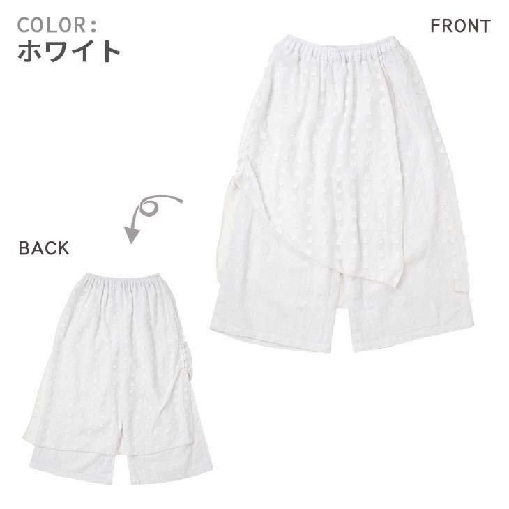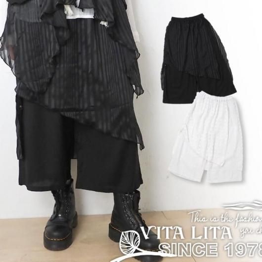 異素材を重ねたデザインが特徴的な8分丈のワイドパンツ。