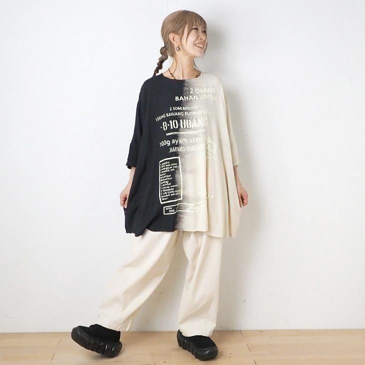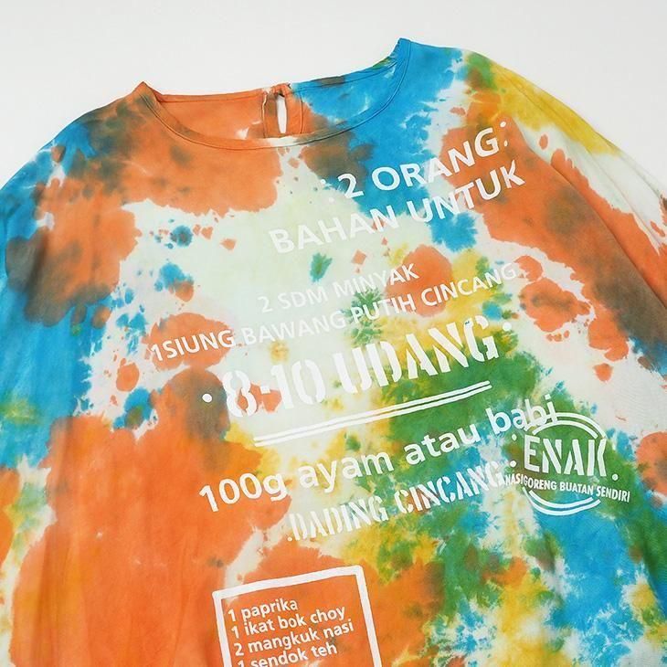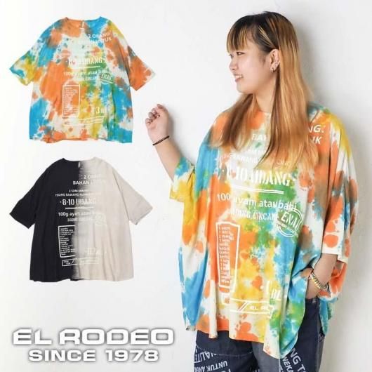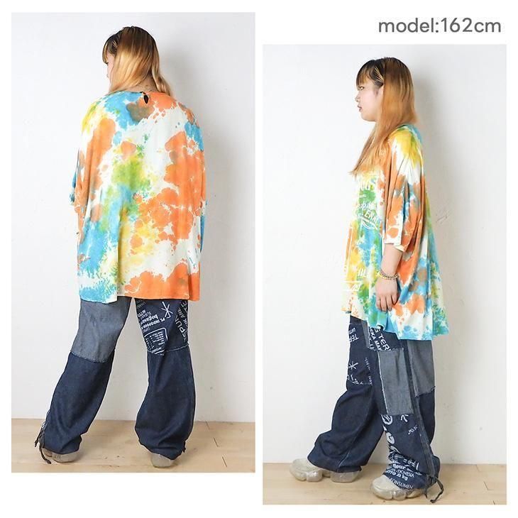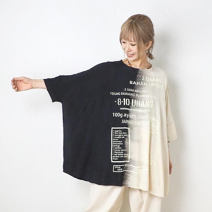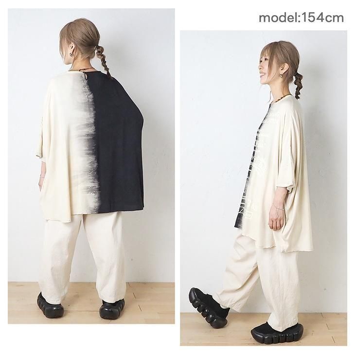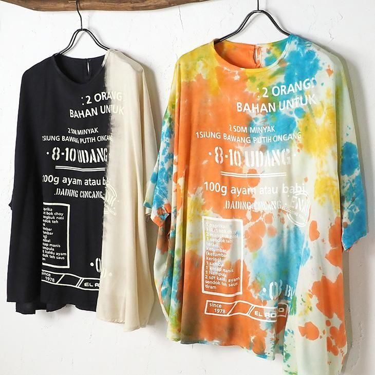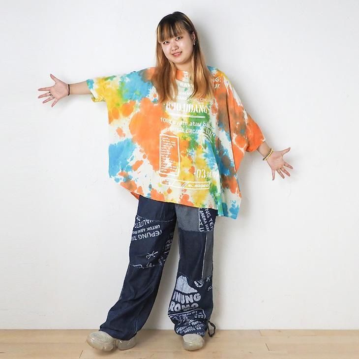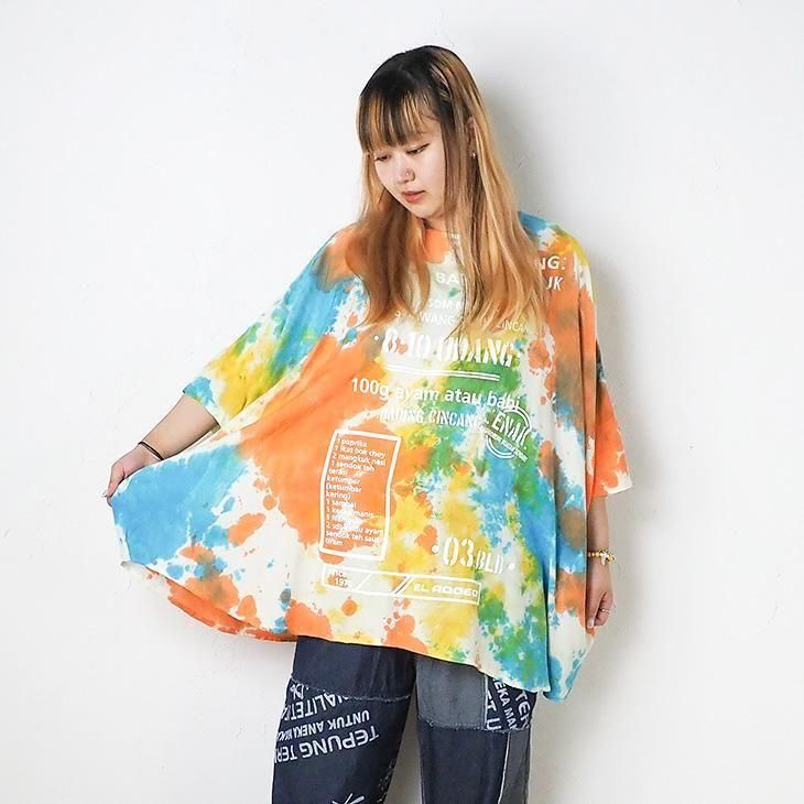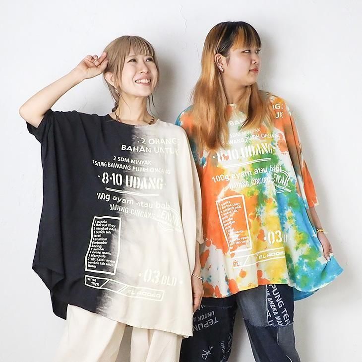 大胆な染めにロゴのプリントがかっこいいドルマンスリーブのポンチョ型トップス。