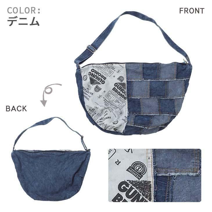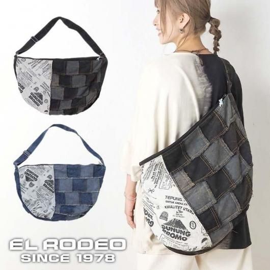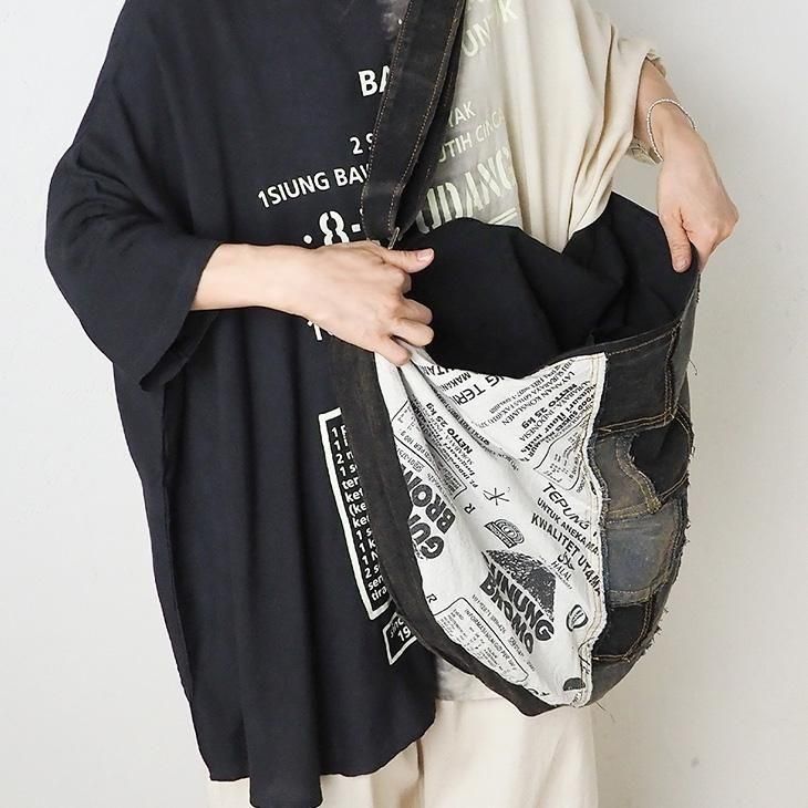 パッチワークとプリントの生地との切り替えがお洒落なビッグサイズのボディバッグ!