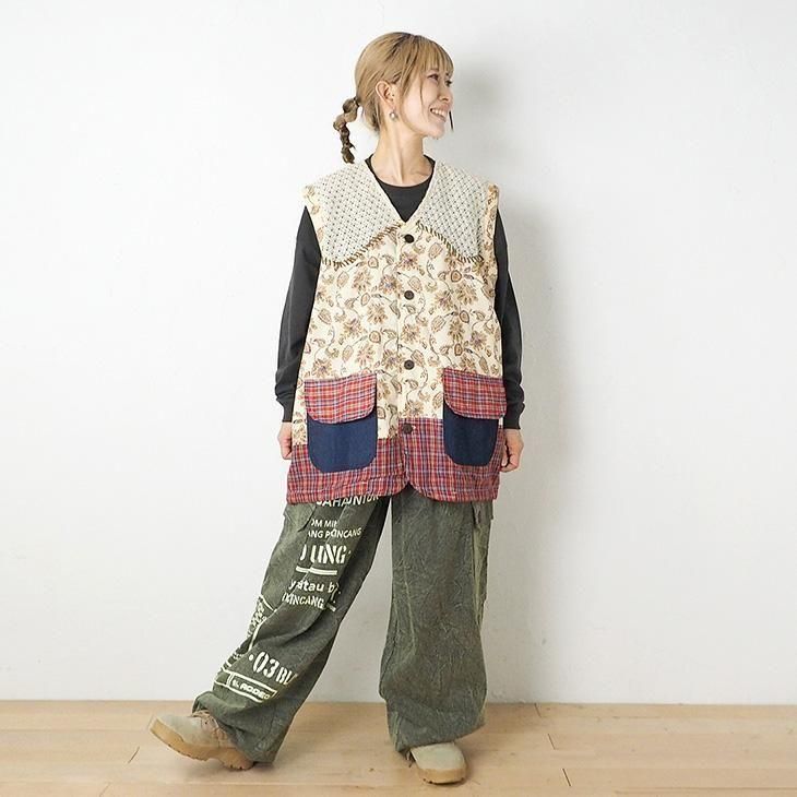 バティック柄×キャンバス×ネット使いベスト