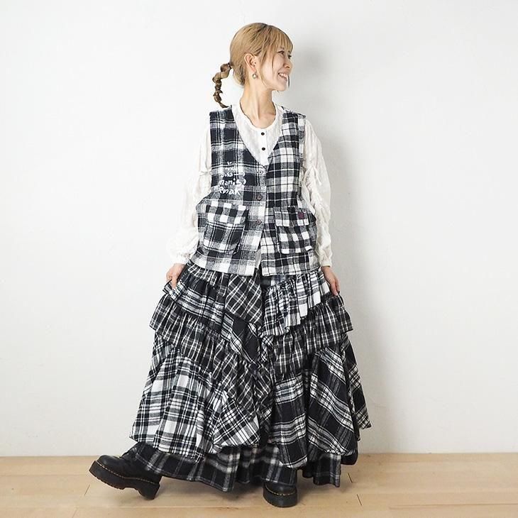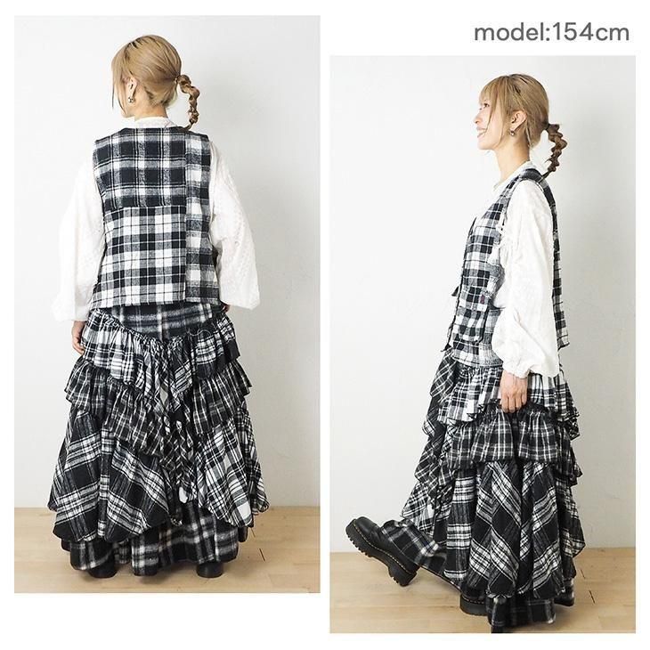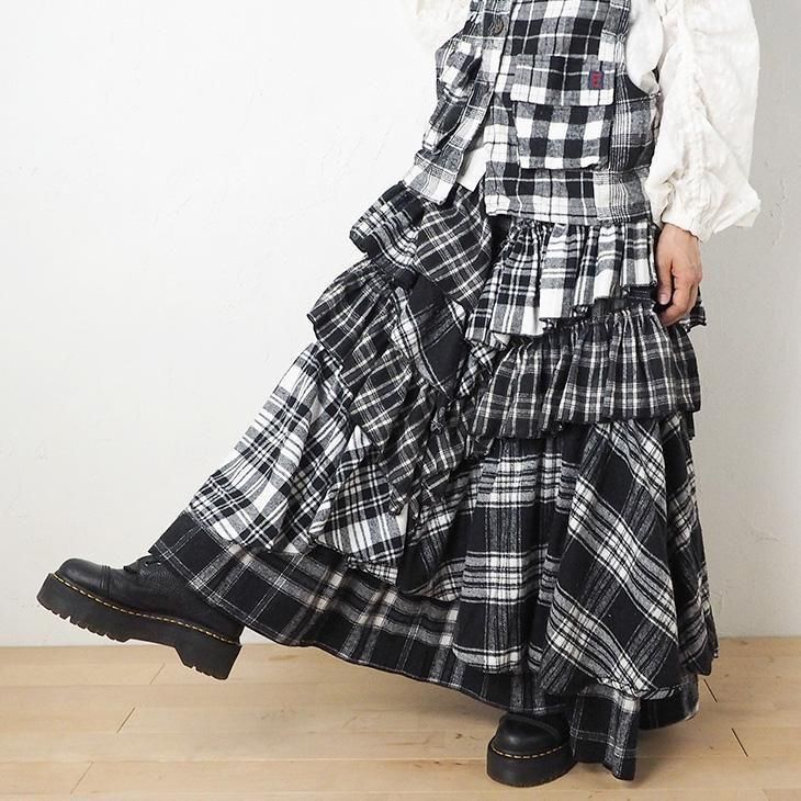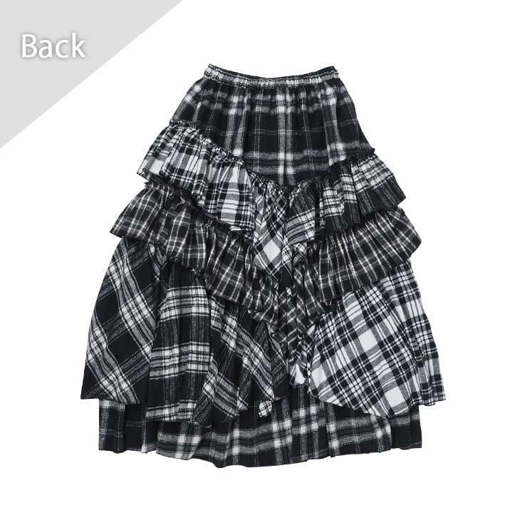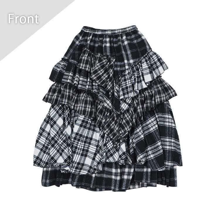 ランダムに折り重なったフリルのボリューム感が可愛いロングスカート!