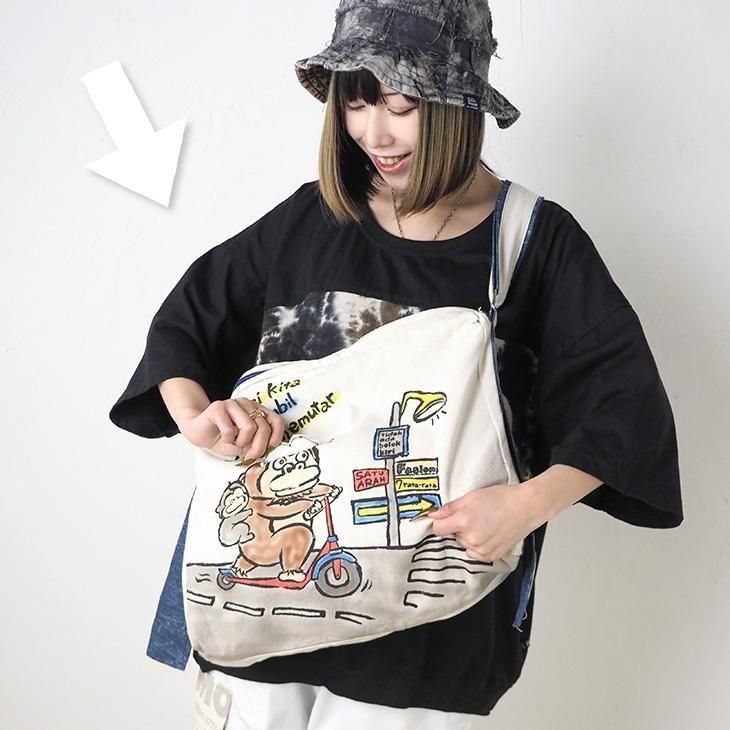 アルパカとゴリラのイラストが可愛いキャンバス素材のショルダーバッグ!