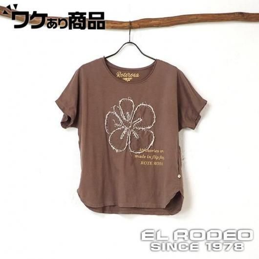 【ワケあり商品】ROTE ROSA(ローテローザ)ハイビスカスアップリTシャツ(ブラウン)