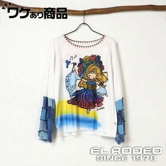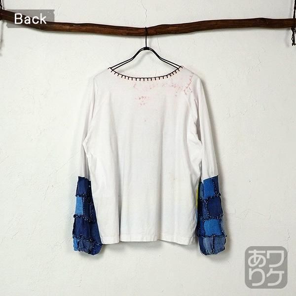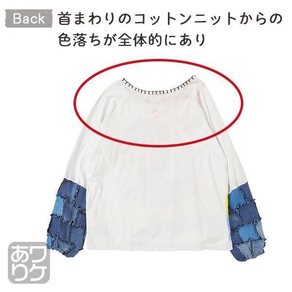 【ワケあり商品】袖コットンニットパッチワーク女の子カットソー(ホワイト)