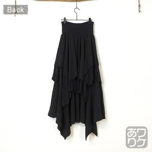 【ワケあり商品】VITA LITA(ヴィータリータ)異素材3段フリルロングスカート(ブラック)