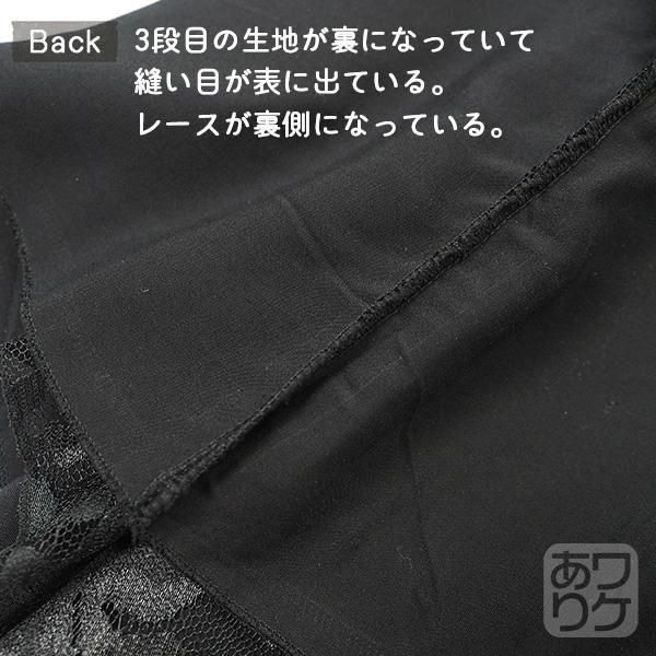3段目の生地が裏になっていて、縫い目が表に出ている。
