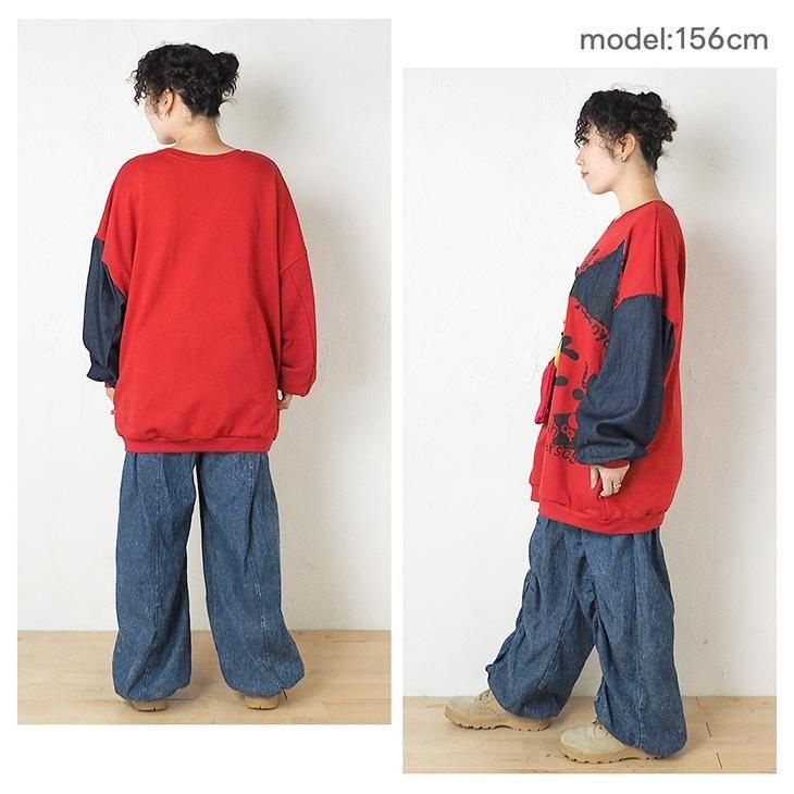 ギャザー入りラフパンツ(ムラ染め/デニム)