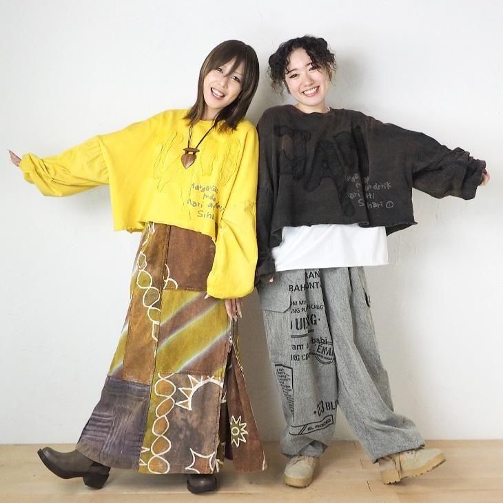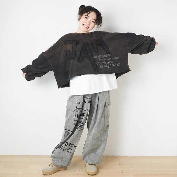 ワイドパンツやロングスカートとの相性抜群のショート丈トレーナー。