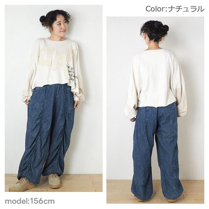 ギャザー入りラフパンツ(ムラ染め/デニム)
