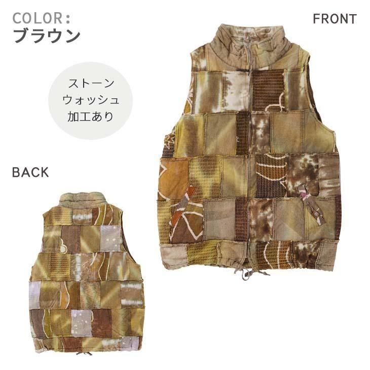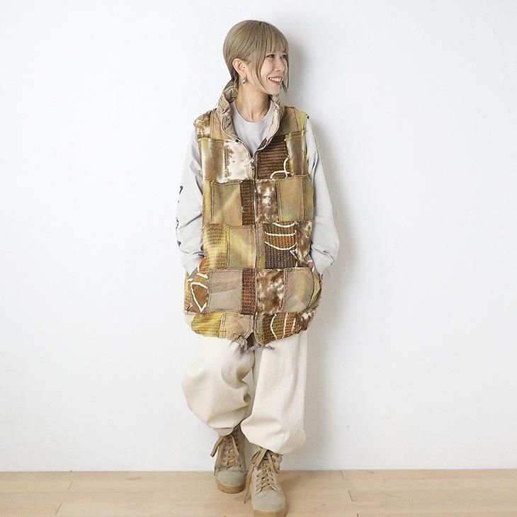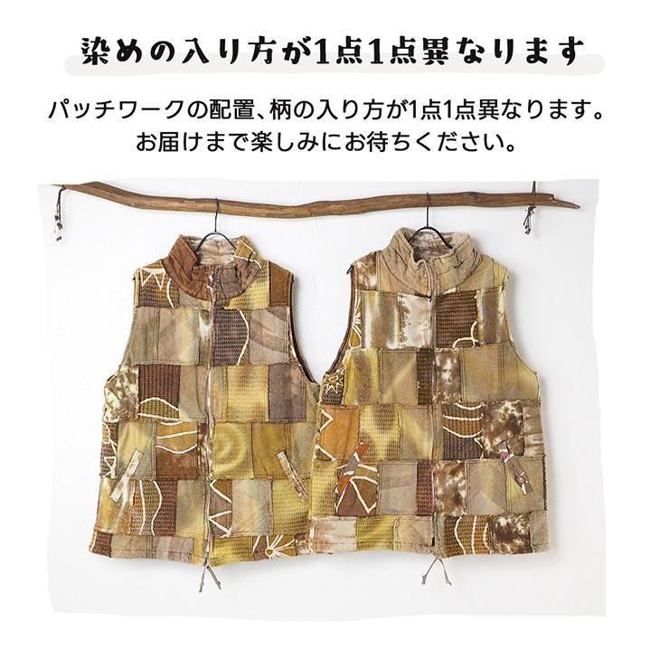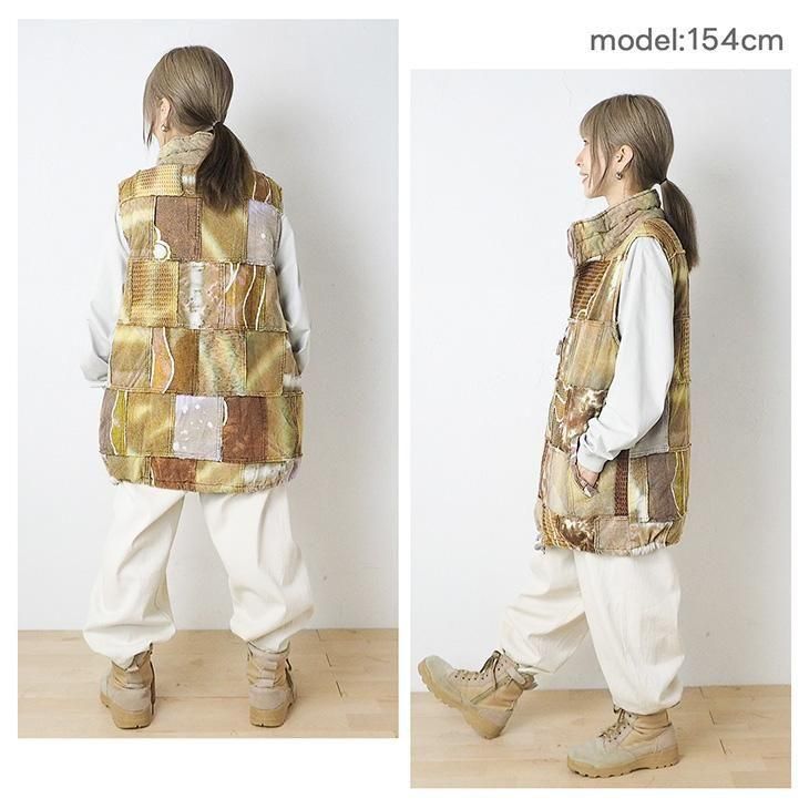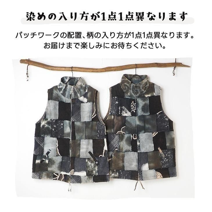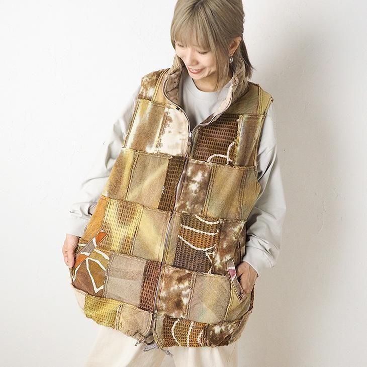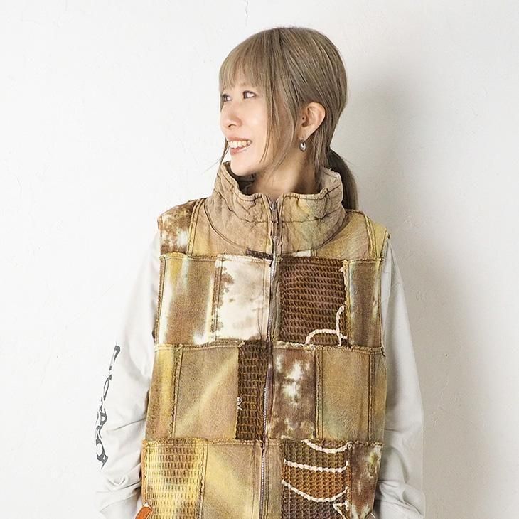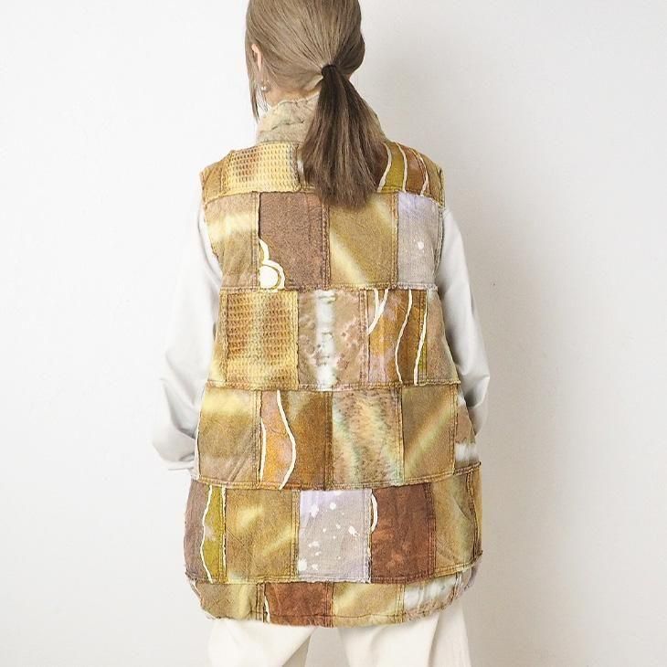染め異素材パッチワーク 中綿ベスト