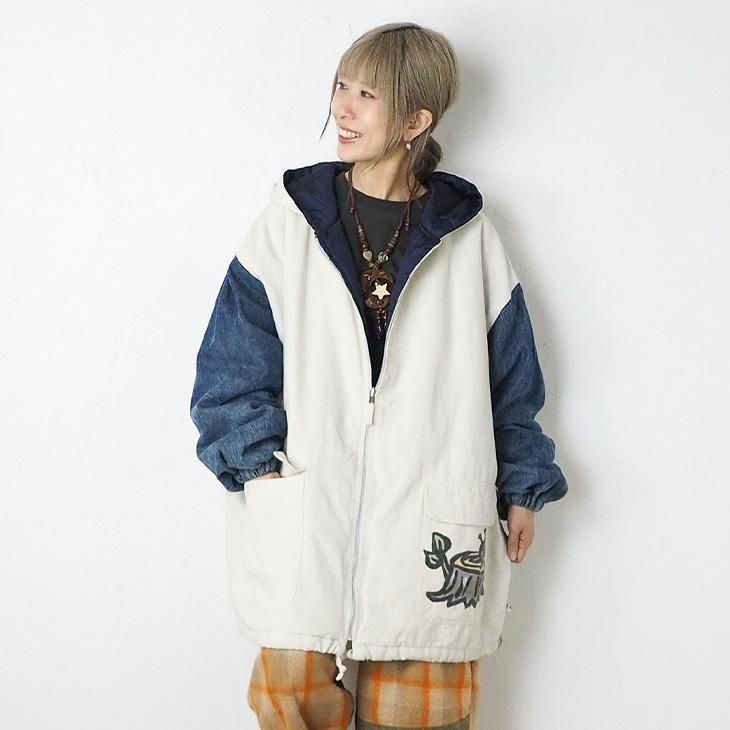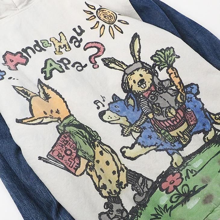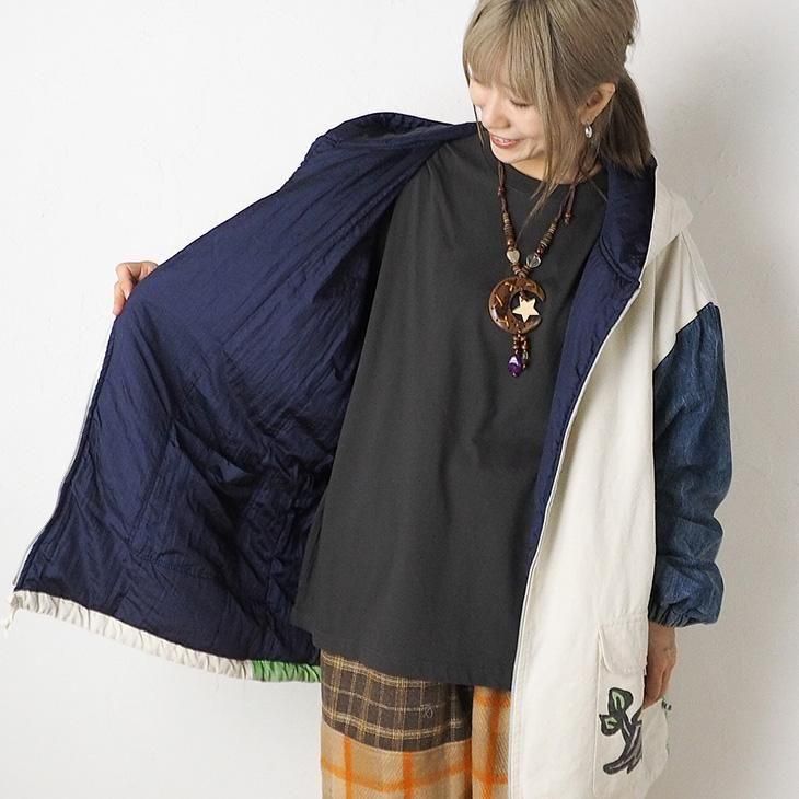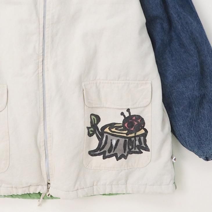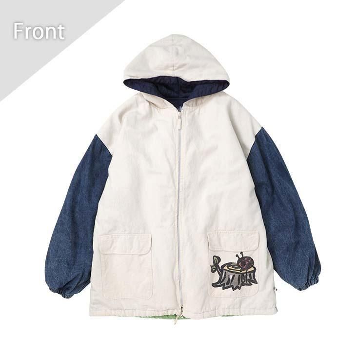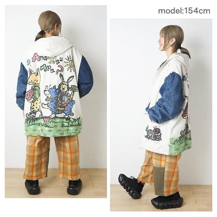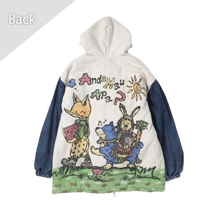 背中いっぱいに描かれたイラストが可愛い中綿パーカージャケット!