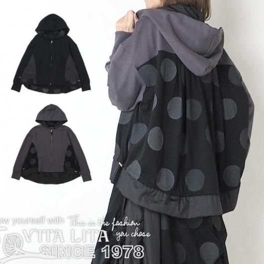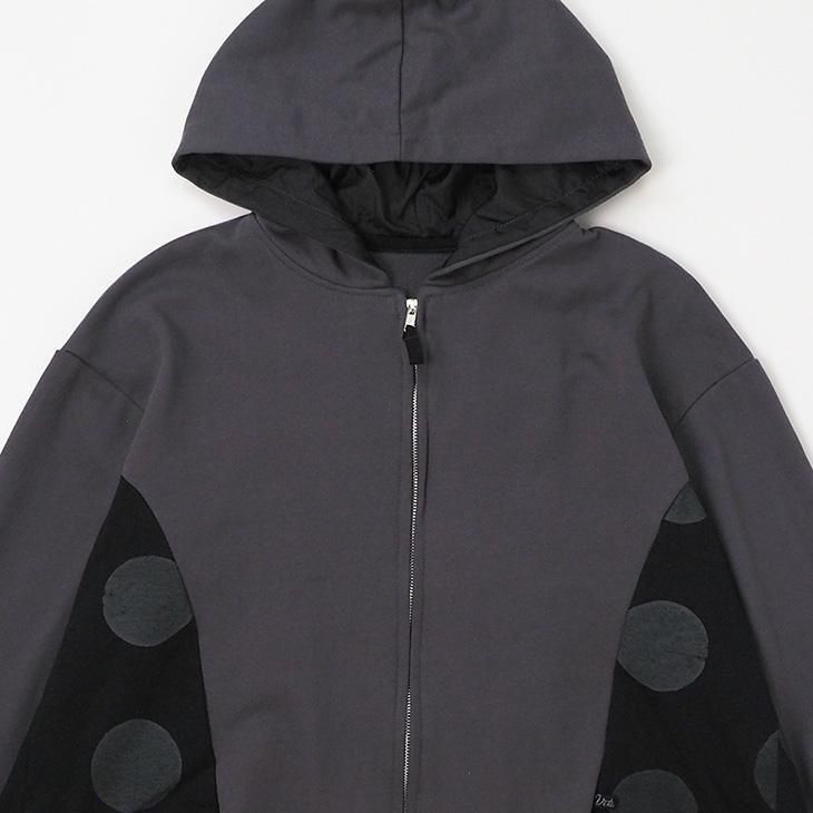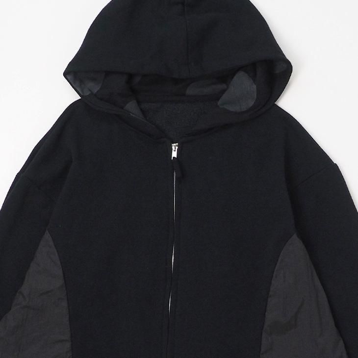スウェット素材をベースにした、フード付きのジップアップパーカー。