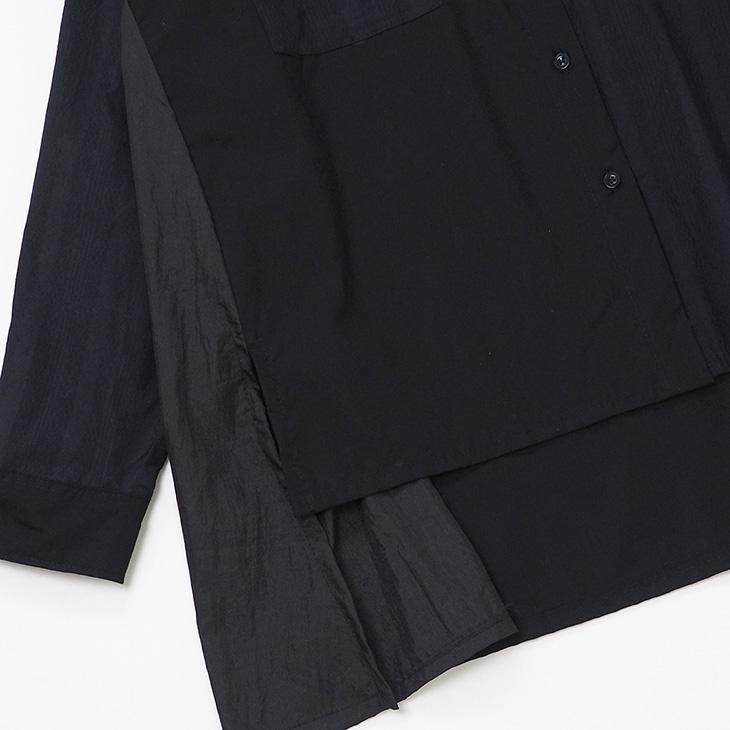 サイドの切り替えとスリットが特徴的なAラインのシャツチュニック。