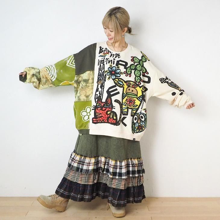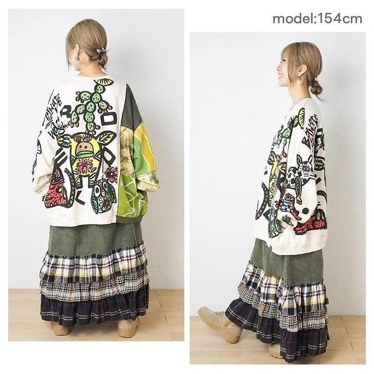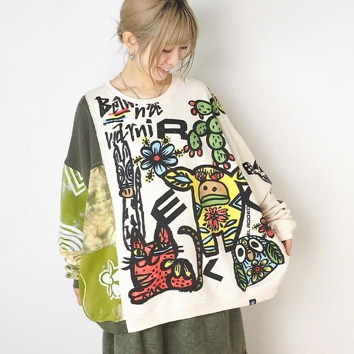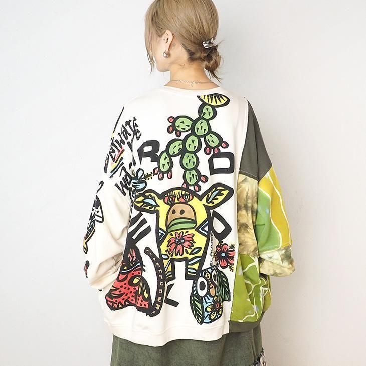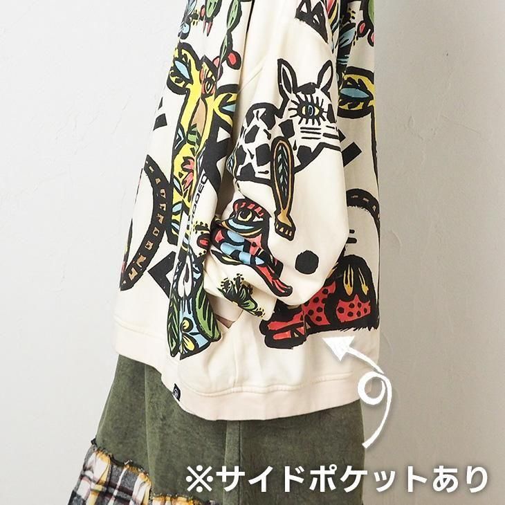 【WEB限定】染め切り替え フォークアート アニマルトレーナー