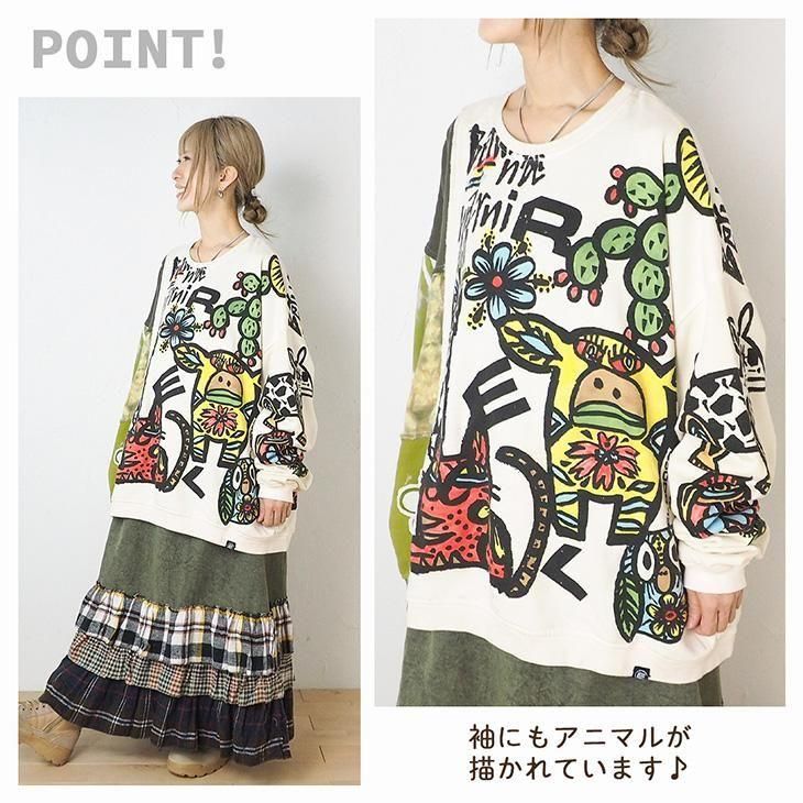 今回のWEB限定アイテムは、フォークアートをテーマにしたアニマルデザインのトレーナー。