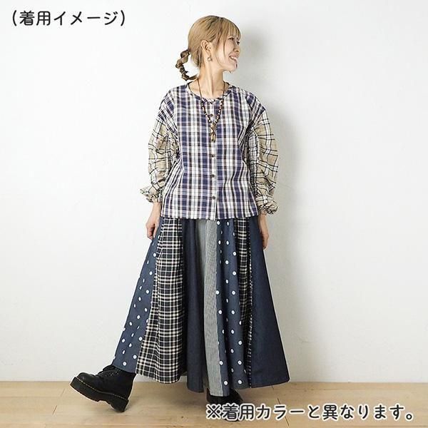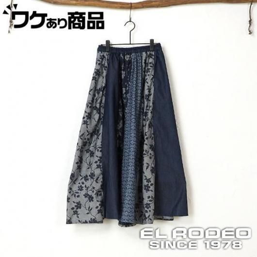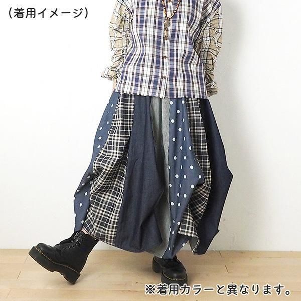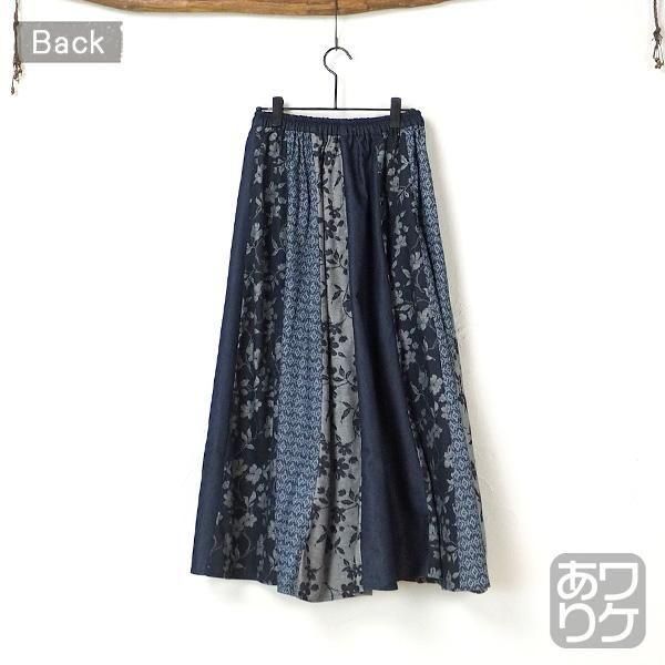 【ワケあり商品】VITA LITA(ヴィータリータ)ジャガードデニム縦切り替えバルーンロングスカート(インディゴ)