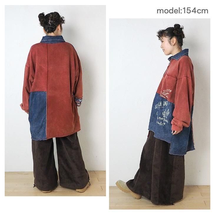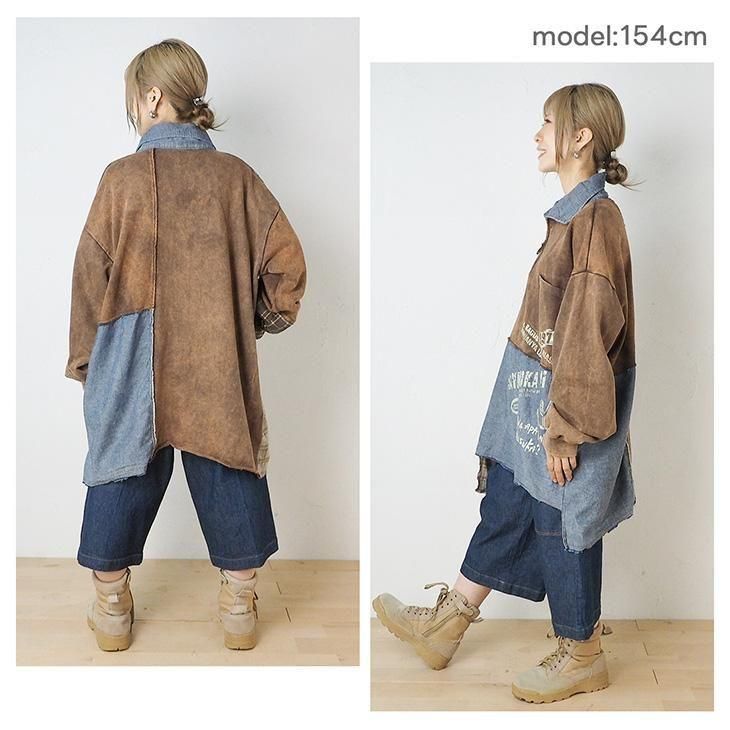 ウール(チェック柄)×デニムの切り替えがGOOD!