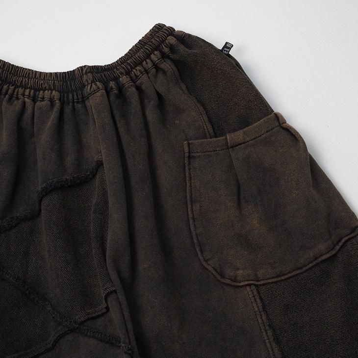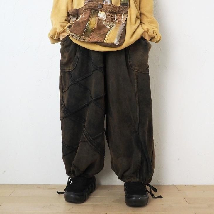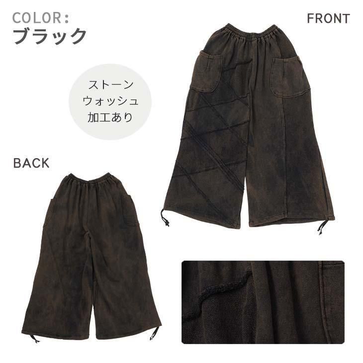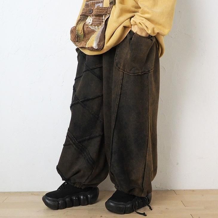 立体感のある格子状のデザインが特徴的なスウェットワイドパンツ。