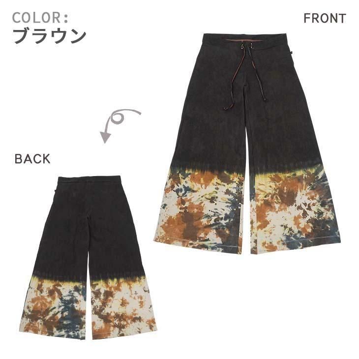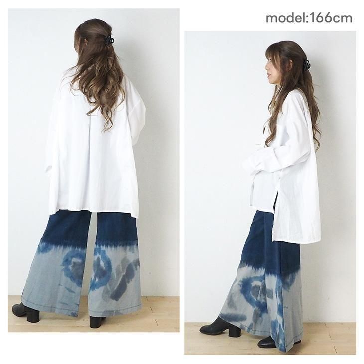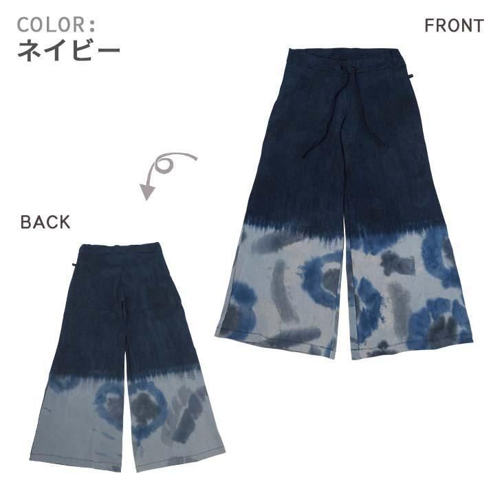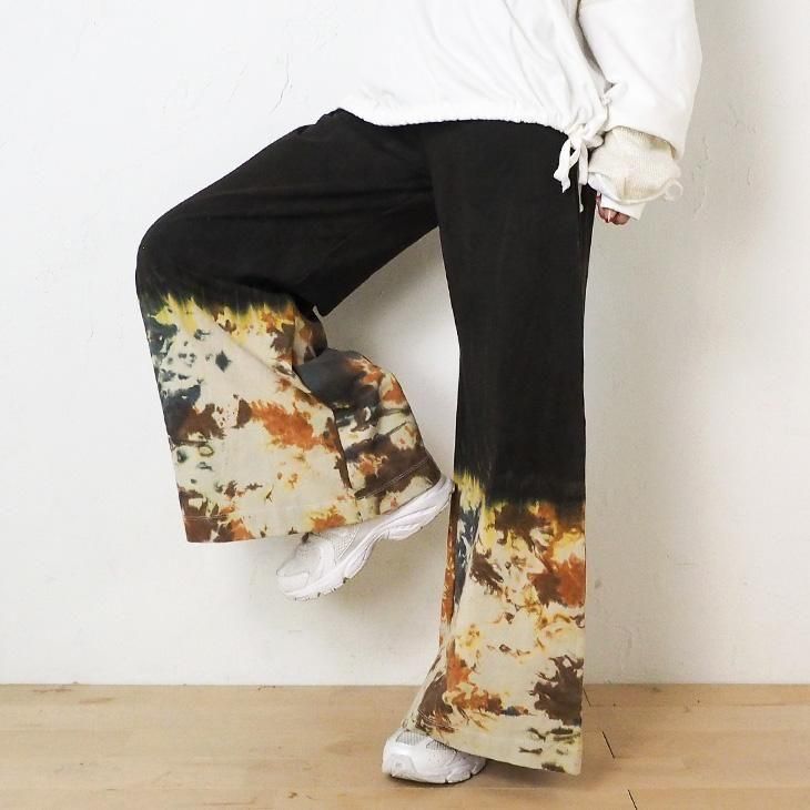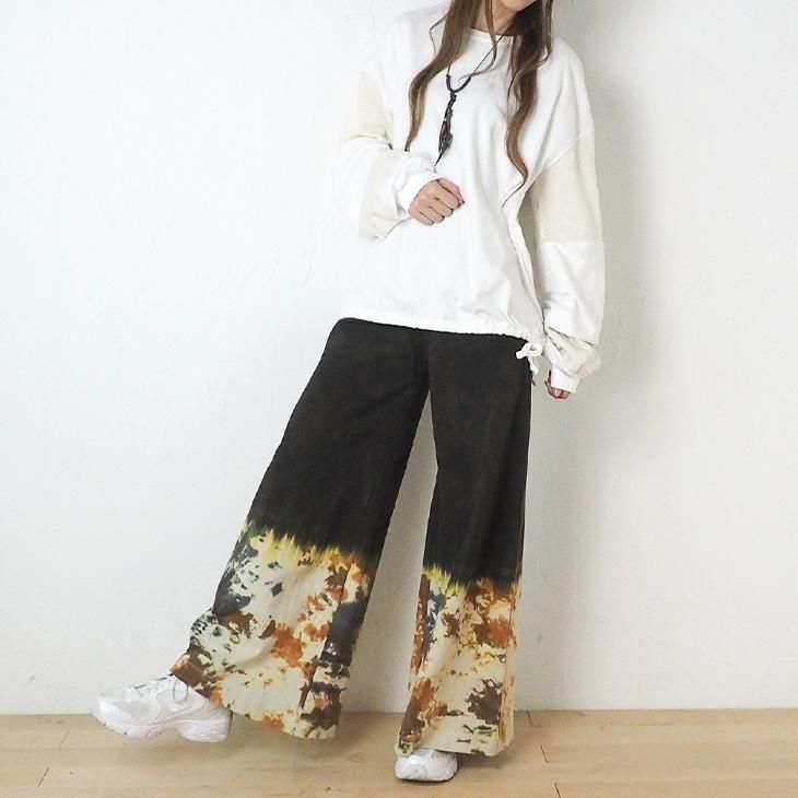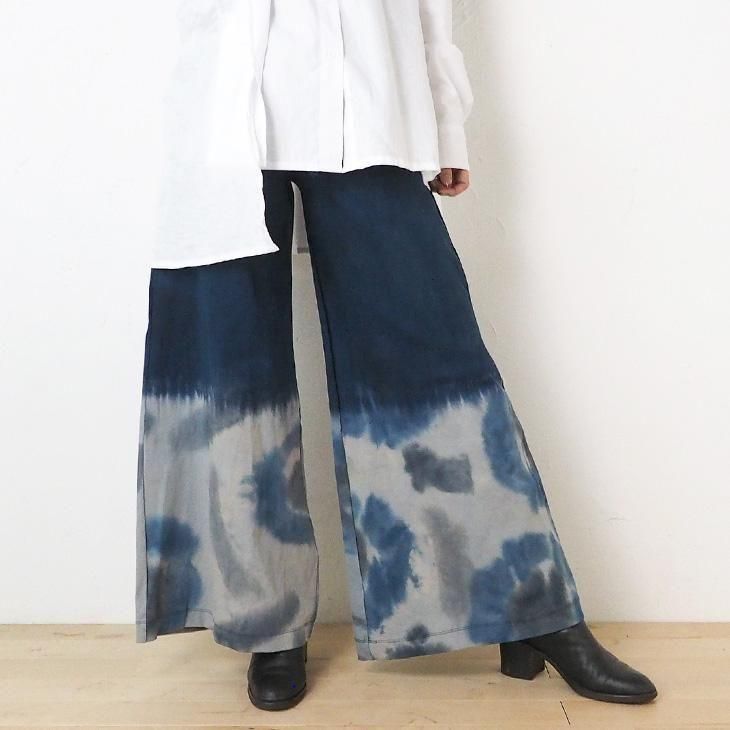 裾の染めが特徴的なストレッチ素材のワイドパンツ。