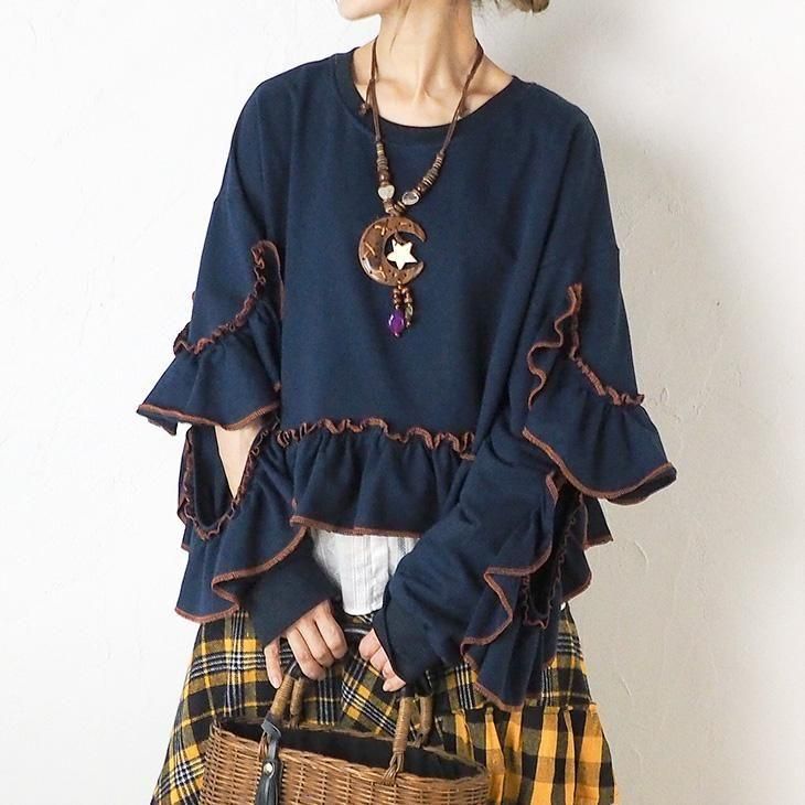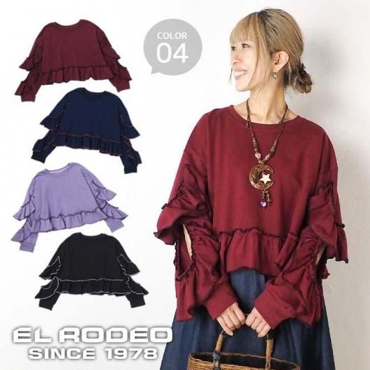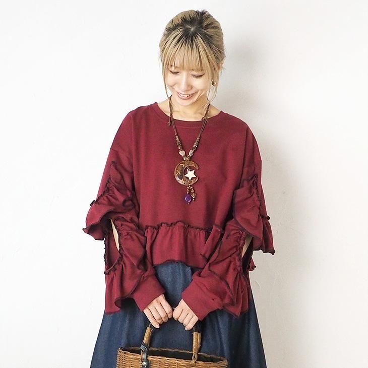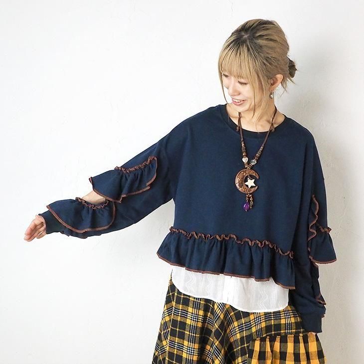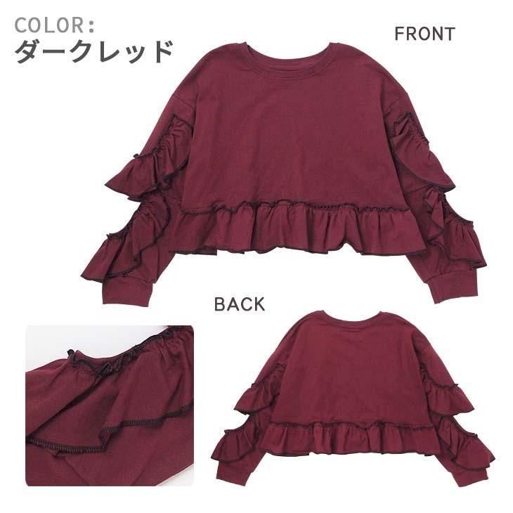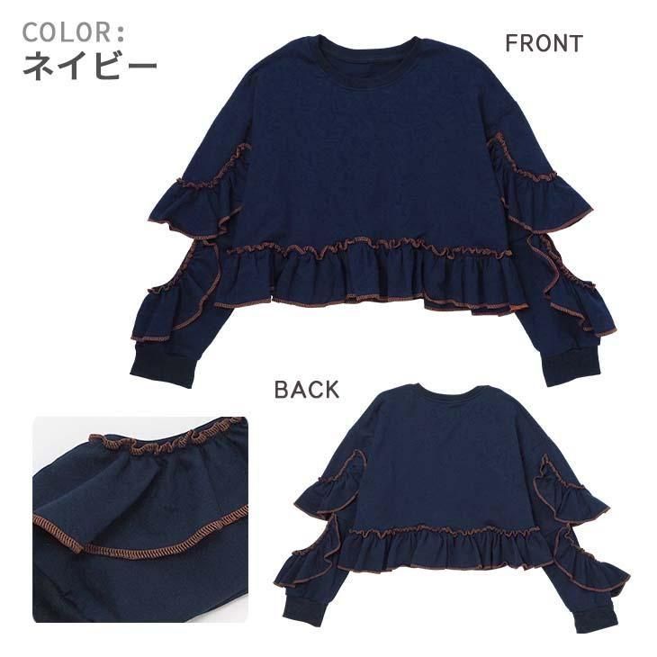 袖のフリルが可愛いショート丈トレーナーが登場です♪