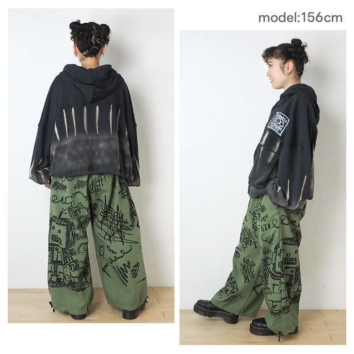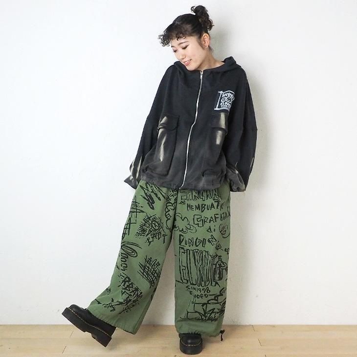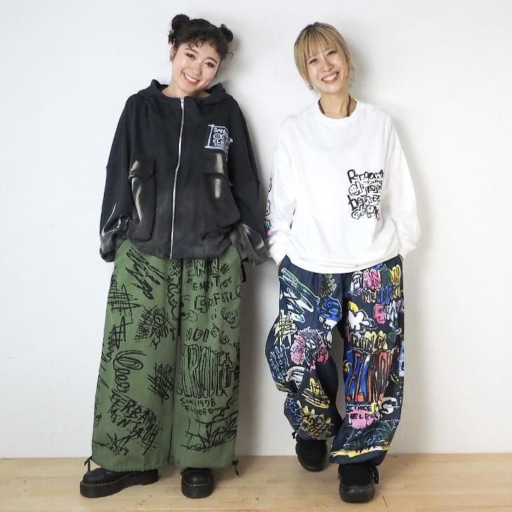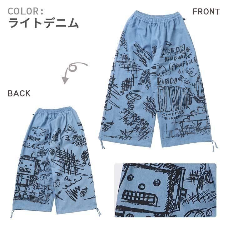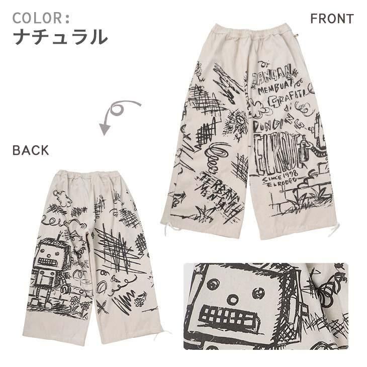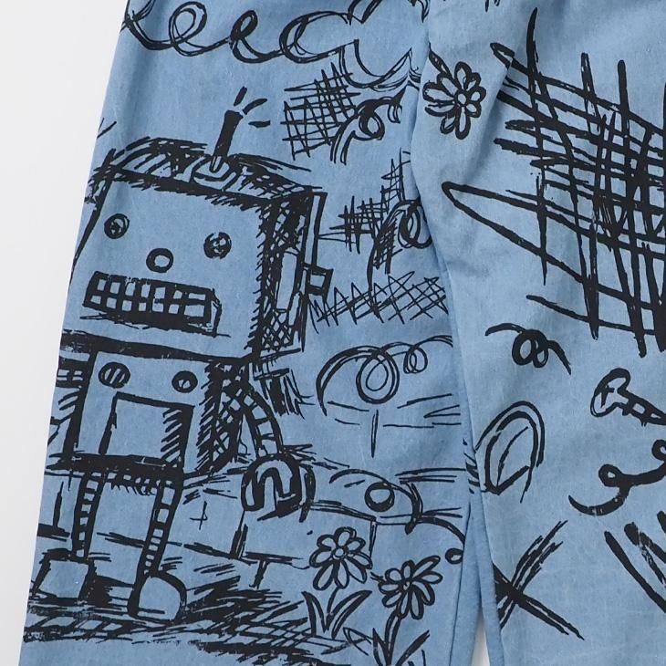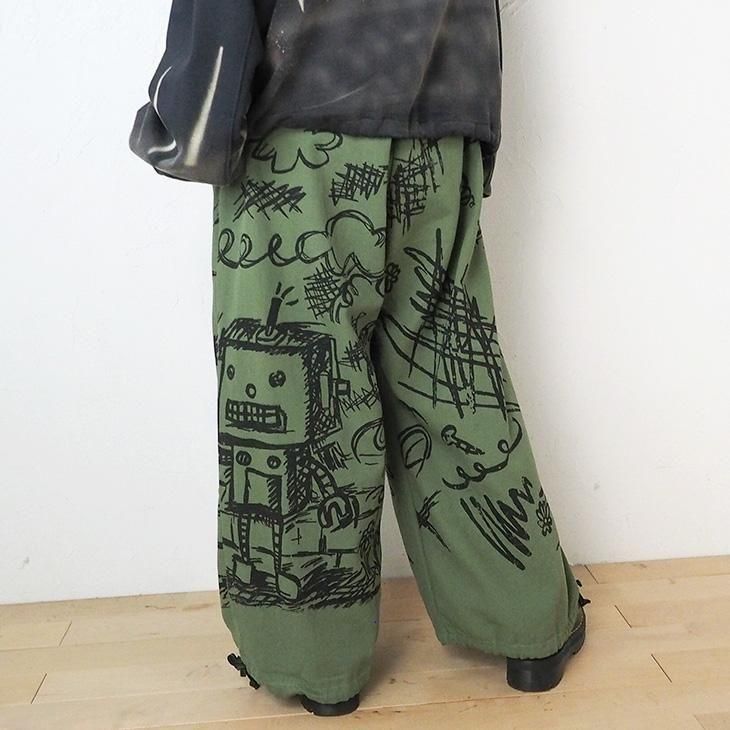 落書き風ロボット 総柄ワイドパンツ(カラフルプリント)