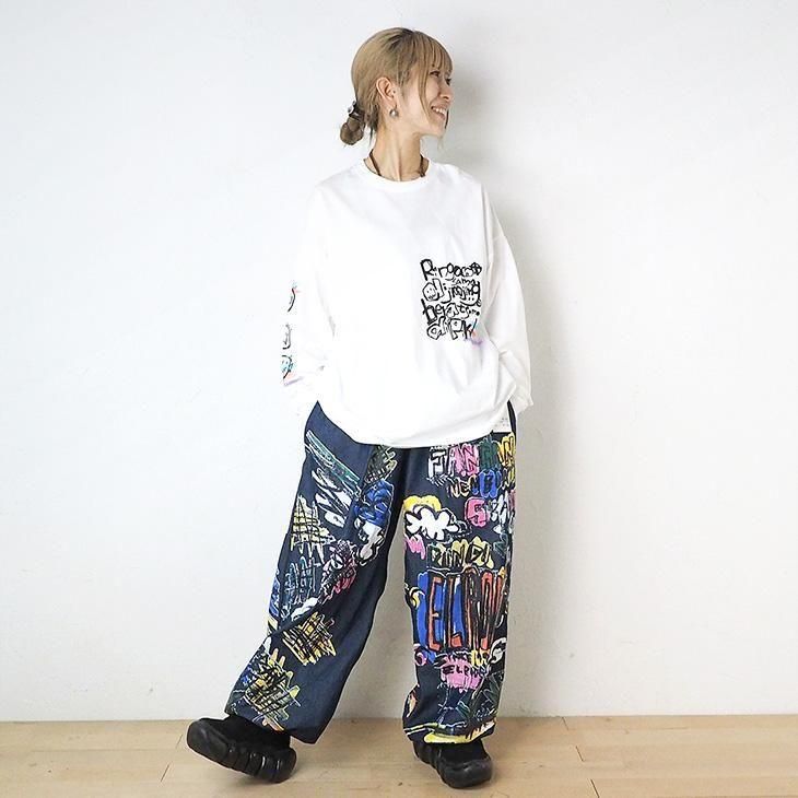 落書き風ロボット 総柄ワイドパンツ(単色プリント)