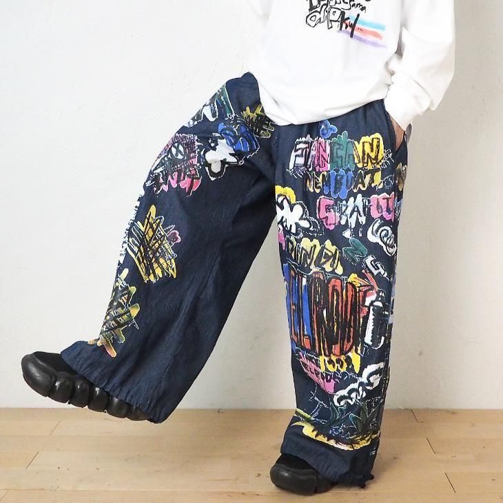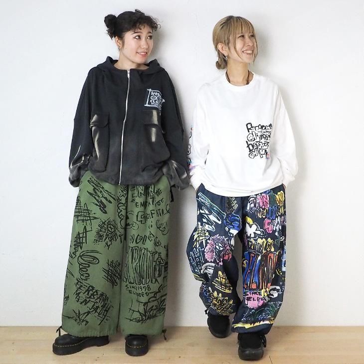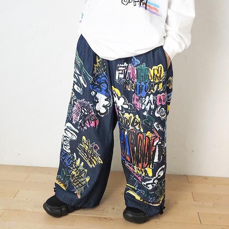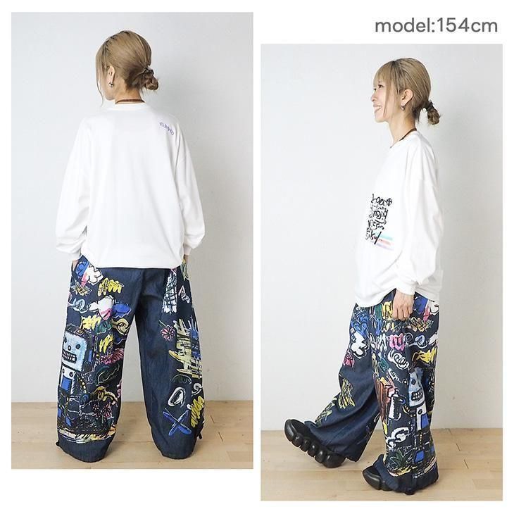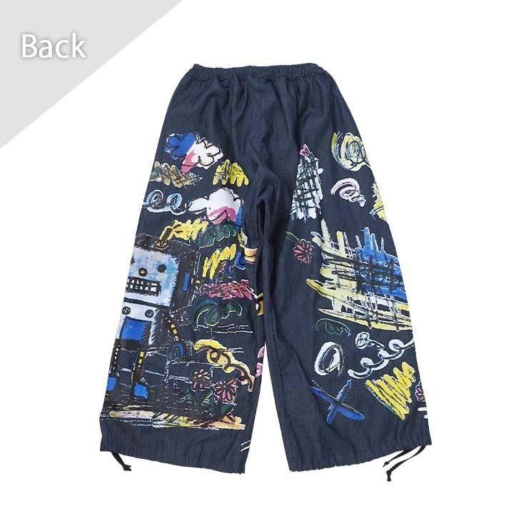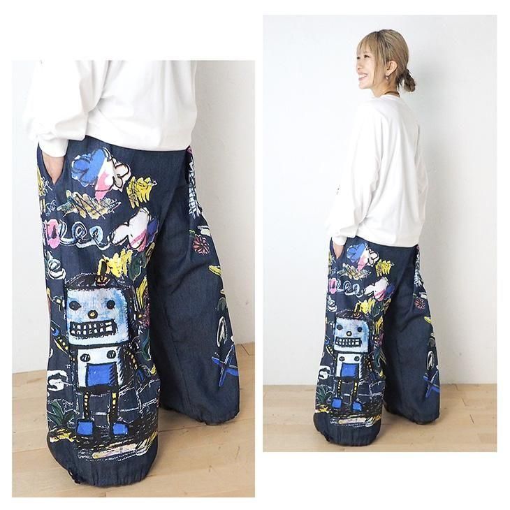 落書き風のロボットが可愛いワイドパンツにカラフルプリントタイプが登場です♪