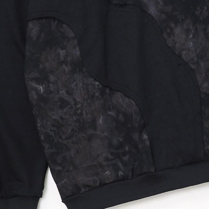 切り替え部分は切りっぱなしになっていて、裁断部分の糸を自然にほどくことで、フリンジが形成される仕様となっております。そのため、多少の糸のほつれが発生しますが、デザインの一部としてお楽しみいただけますと幸いです。気になる糸がございましたら、引っ張らずにハサミでカットしていただくことで、きれいな状態を保つことができます。
