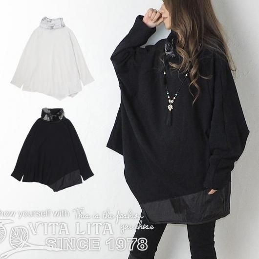 VITA LITA(ヴィータリータ)ネックコットンニットパッチ Aライントレーナー