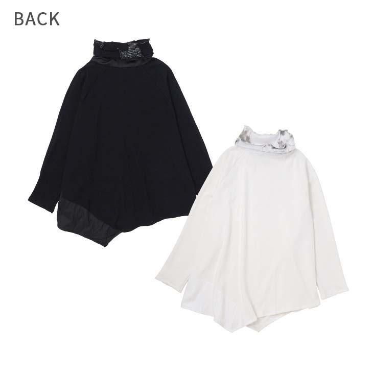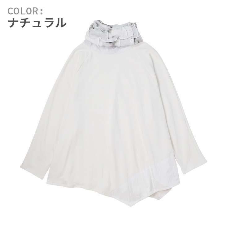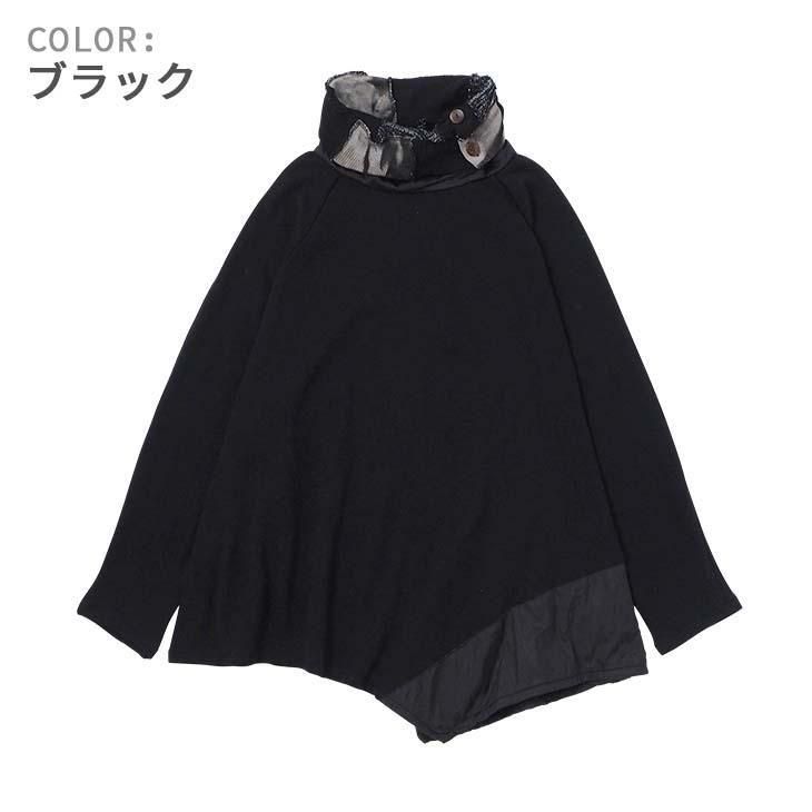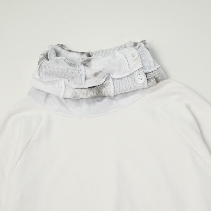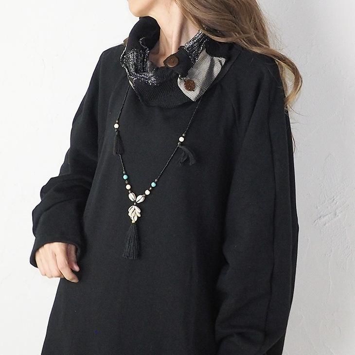 ネック部分は、染め×無地×金糸の入ったコットンニットのパッチワークになっています。