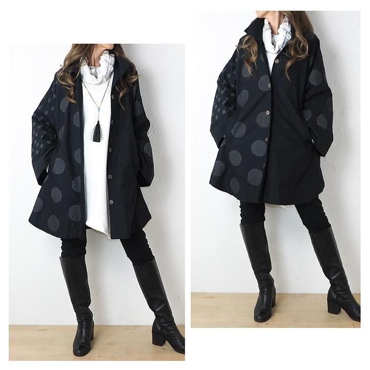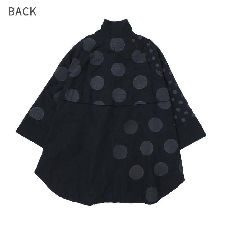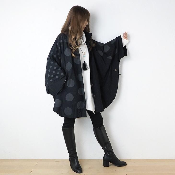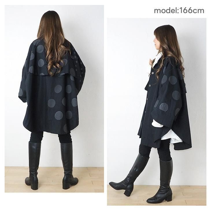 大きさの異なるドット柄の切り替えがお洒落な、ポンチョ型ジャケットが登場♪