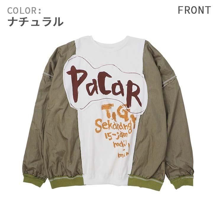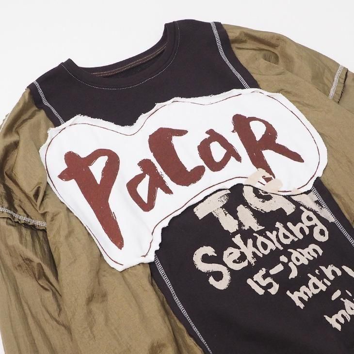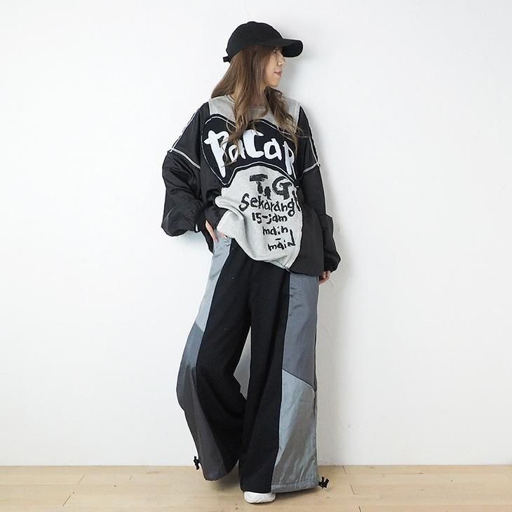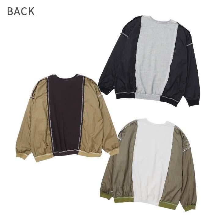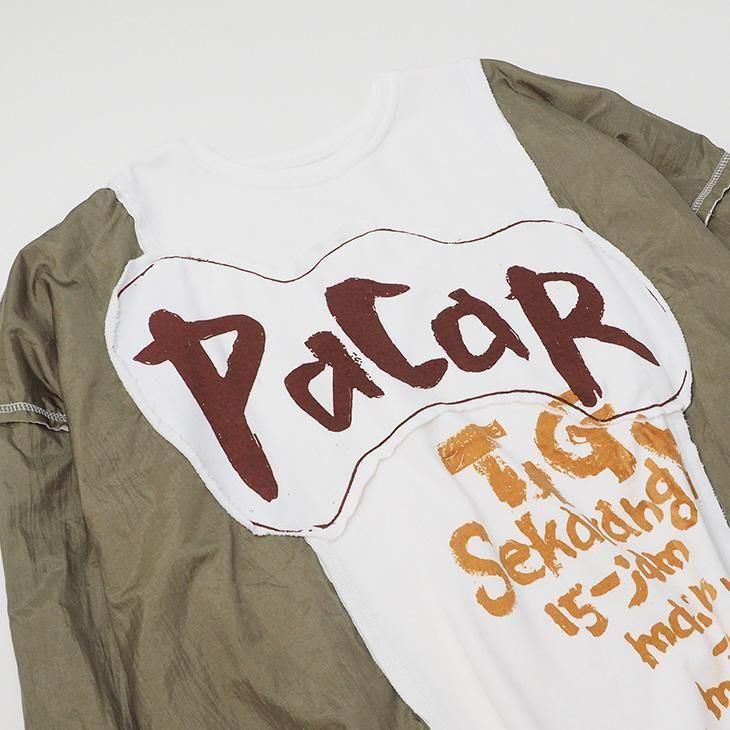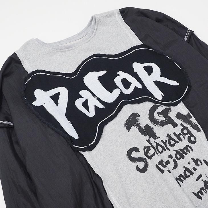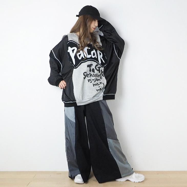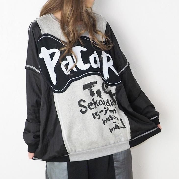 異素材の切り替えと大胆なロゴのアップリケに注目!